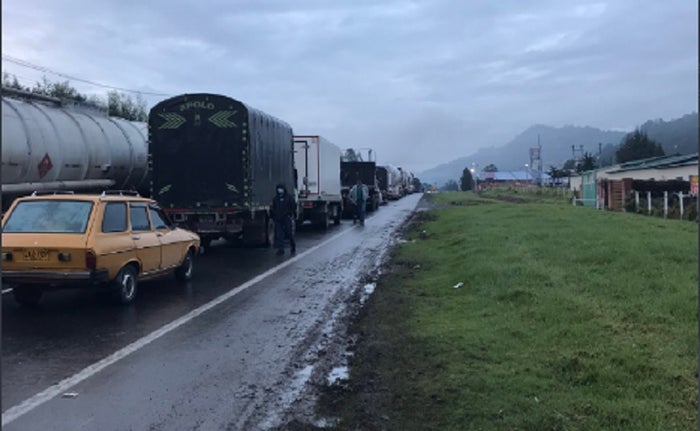 De otra parte, la Autopista Bogotá - Medellín ya completa cerca de 20 horas bloqueada a la altura del municipio de El Rosal, Cundinamarca dónde la fila de vehículos de carga completa varios kilómetros.