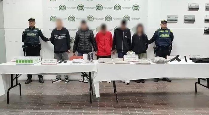 “Durante el procedimiento de captura en flagrancia se logra la incautación de 5 kilos de marihuana, 30 catarros de ketamina, ácidos, 7 gramos de cocaína, un chaleco antibalas y un arma pistola tipo traumática. (…) presentan antecedentes o anotaciones judiciales por los delitos de inasistencia alimentaria, lesiones personales y tráfico y fabricación de porte de superpacientes”, señaló.