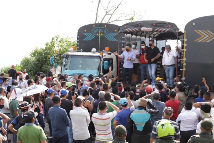 Gobernación de Cundinamarca Camioneros despejan vía del Tequendama
