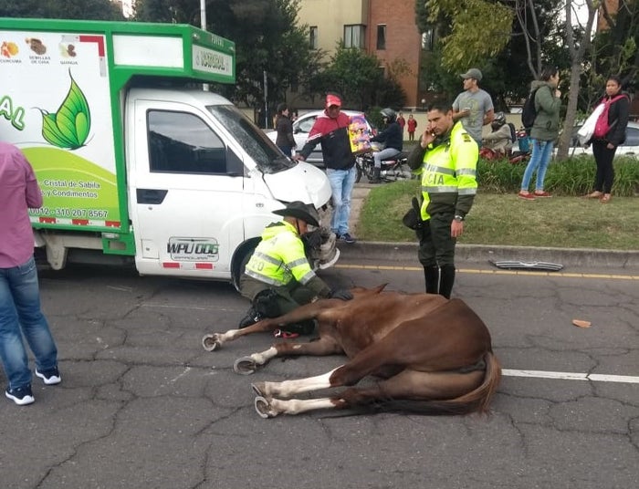 Un accidente vial se presentó en la tarde de este miércoles entre un vehículo particular y un caballo perteneciente a la Policía de Carabineros, a la altura de la calle 110 con carrera Séptima, en el norte de Bogotá.