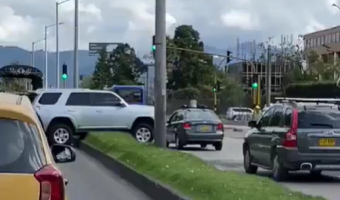 Las imágenes muestran a una camioneta, al parecer marca Toyota 4x4, atravesada sobre un separador en un sector de la capital. Sorpresivamente, los usuarios de las redes sociales se preguntan cuál era la maniobra que planeaba el conductor con el vehículo, pues aunque la vía por la que transitaba tenía sentido norte- sur, la camioneta quedó en una dirección completamente opuesta.