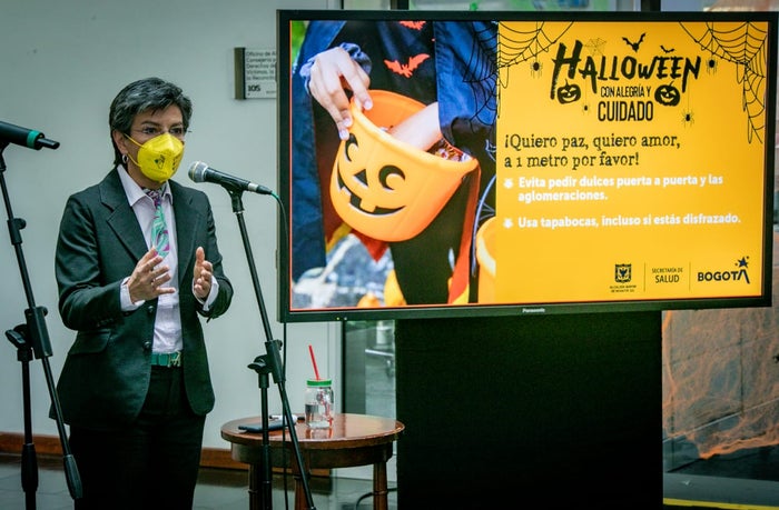 "Es un riesgo que los niños se puedan intoxicar, es un riesgo que puedan contagiarse de gripa o hasta covid-19. Por el clima que se está presentando en Bogotá, no es recomendable salir a pedir dulces", señaló.