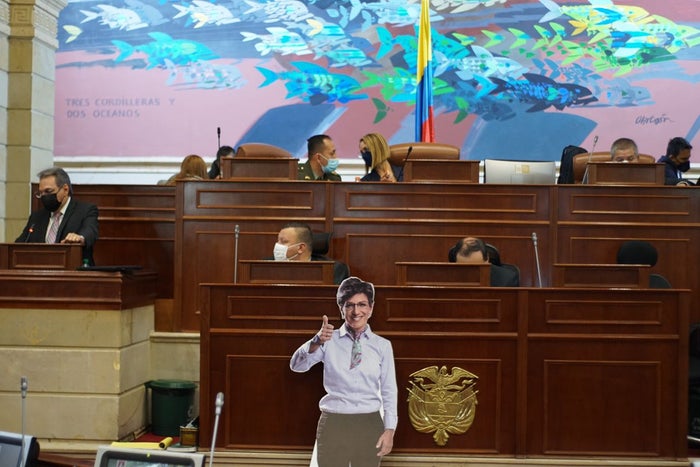 También en su intervención y con la fotografía de la alcaldesa impresa en un cartón, Wills indicó que “yo quiero invitar acá a nuestra alcaldesa de papel. La alcaldesa que nosotros tenemos también es de papel. Así que yo si quiero darle el debate de control político a la alcaldesa Claudia López. Y por eso la hemos traído acá para que no diga nada. Porque finalmente lo que dice la alcaldesa es como la 'Chimoltrufia', como dice una cosa, dice otra”.