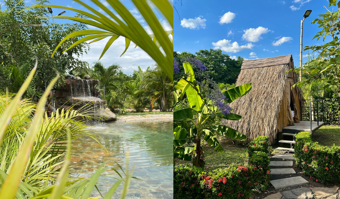 Cada detalle está pensado para que se relaje y disfrute al máximo. Con sus amplias cabañas de 100 m² están rodeadas de zonas verdes y cuentan con un comedor al aire libre, jacuzzi y hasta una malla catamarán donde puedes descansar mientras contemplas el paisaje. Además, la piscina natural es ideal para desconectarte y darle un respiro a su cuerpo y mente.