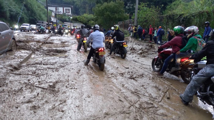 En la noche de este miércoles se desbordó una quebrada, lo que generó un deslizamiento de tierra que obstaculizó el paso en ambas calzadas la autopista Medellín-Bogotá a la altura del municipio de Copacabana, kilómetro 4+200, sector motel El Descanso.