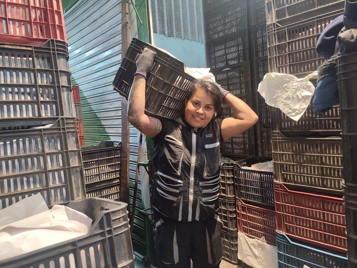 Trabaja más de ocho horas al día y carga camiones con melón, piña, plátano, banano, naranja y todo lo que vaya saliendo. Se siente orgullosa de lo que hace y sabe que para las mujeres no hay imposibles.