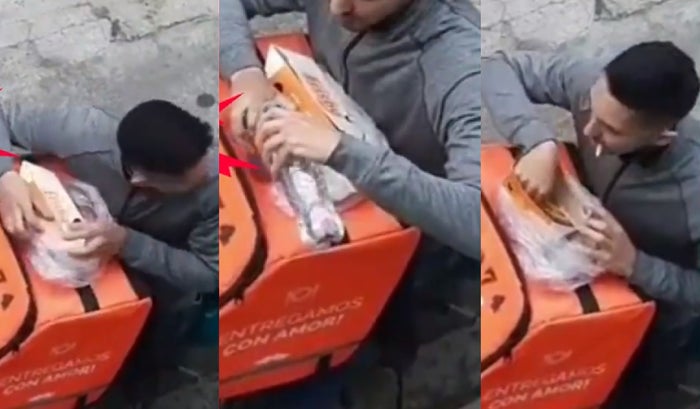 La grabación ha dejado boquiabierto a más de uno, pues en las imágenes se puede observar como el descarado tipo abre la caja del alimento y come papas, además de dejar manoseada la otra comida.