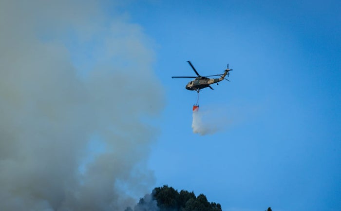 2. En el sector de Quiba Baja, los bomberos de la estación Candelaria están utilizando una máquina extintora para controlar otro foco de incendio.