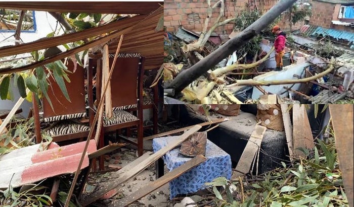 La emergencia se presentó este miércoles 20 de abril a las 6:40 a.m. en el sector de La Florida baja en la comuna 6, del vecino municipio de Bogotá, donde un árbol de eucalipto cayó e impactó tres inmuebles.