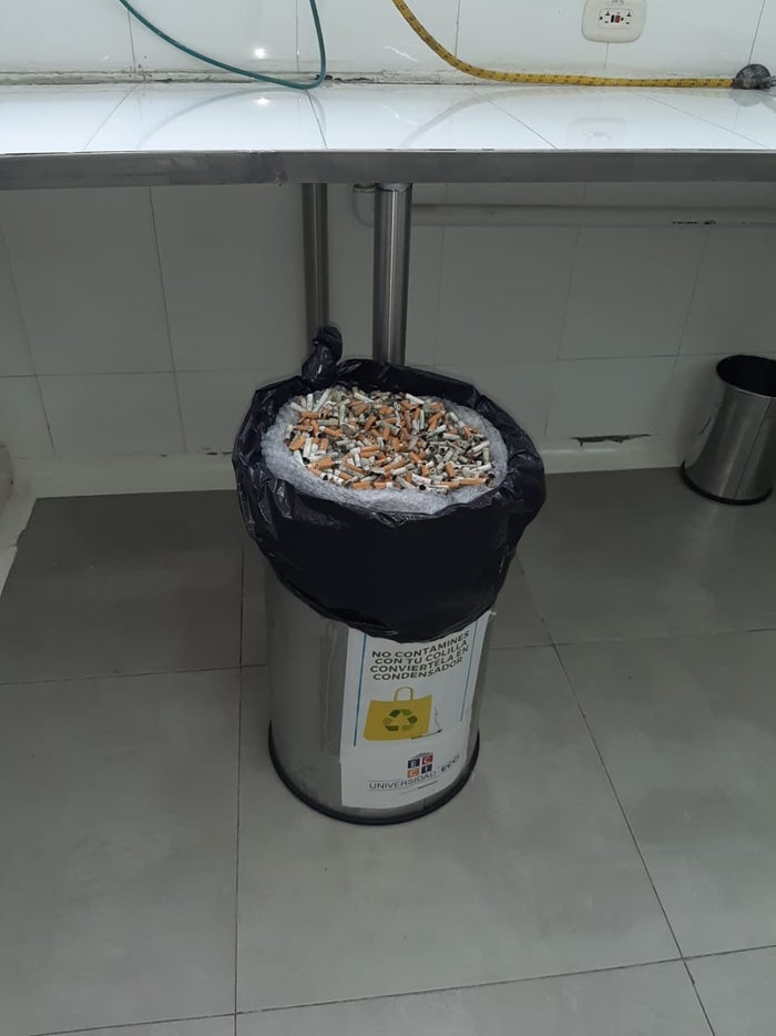 Este proyecto, dijo, empezó con la "recolección y disposición adecuada de colillas de cigarrillo en las zonas cercanas a la Universidad, con un resultado de 1.680 colillas de cigarrillo recogidas".