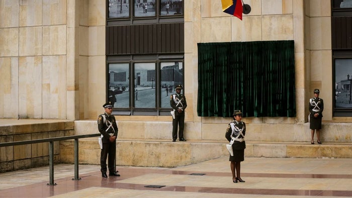 Policías custodiando el Palacio de Justicia