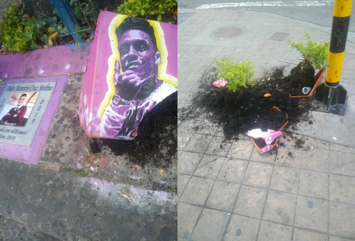 Esta madrugada destruyeron el monumento que se había construido en homenaje a mi hermano. Quienes justifican el asesinato de Dilan parecen querer borrar por completo su historia. Solicito a @ClaudiaLopez y @centromemoria que se garantice que este lugar sea un espacio de memoria.