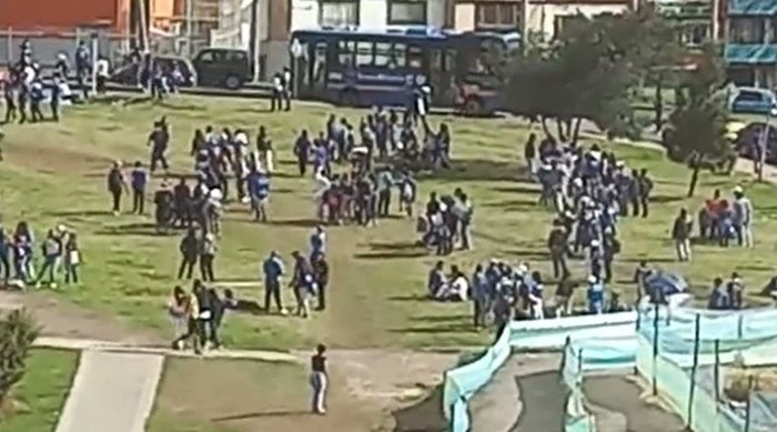 De acuerdo con el secretario de Seguridad de Bogotá, Óscar Gómez Heredia, los hinchas del equipo azul pretendían agredir a las personas por portar la ropa de un color diferente, generando disturbios frente a la residencia y dejando millonarias pérdidas.