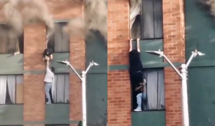 [Video] Hombre se colgó y salvó a mujer y su perro de voraz incendio en edificio de Bogotá