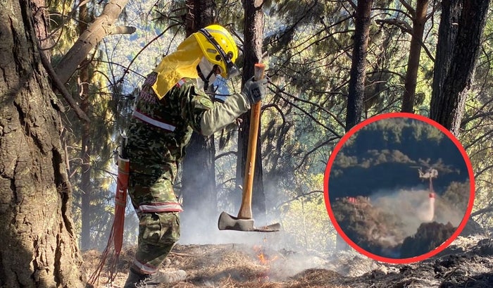 Después de las 6:00 p. m., los helicópteros que realizan descargas de agua no pueden sobrevolar la zona, complicando aún más la tarea.