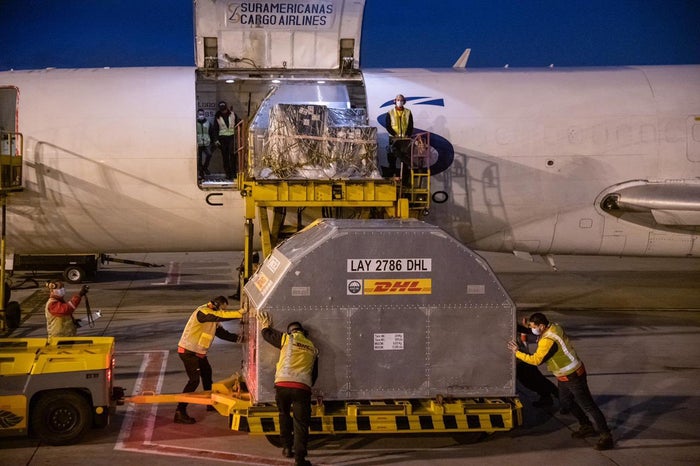Con este cargamento, el país suma 509.620 dosis recibidas, las cuales han sido trasladadas a una bodega de la Zona Franca, para ser puestas en ultracongeladores y de allí distribuidas a las diferentes regiones.