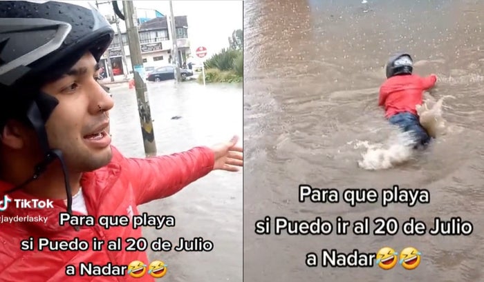 No obstante, hay quienes decidieron sacar un momento divertido en medio de esta situación, tal como sucedió con un habitante de la localidad, quien aprovechó que la calle estaba inundada para salir a nadar, como si estuviera en una piscina.
