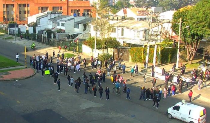 Estudiantes y padres del colegio Divino Maestro se ubican en la intersección de la Carrera 7 con calle 153, generando bloqueo total de la vía.