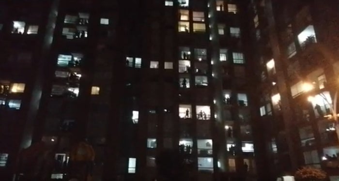 Asimismo, sobre las siete de la noche de este jueves, la mayoría de residentes del conjunto se asomaron a los balcones para aplaudir y, con el himno nacional de fondo, mostrar su apoyo al médico y a su familia.