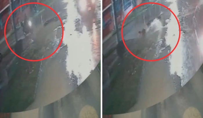 A través de las redes sociales se conoció el video de una cámara de seguridad que captó el momento en el que el conductor se disponía a girar hacia la derecha en una intersección, cuando cae a la alcantarilla destapada, la cual estaba oculta en un charco de agua producto de las lluvias.
