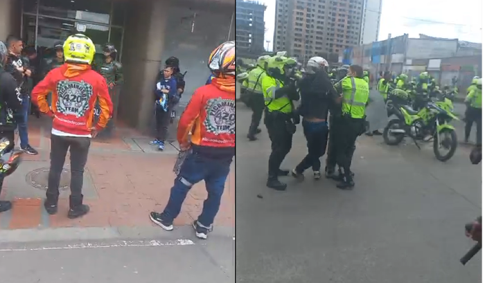 Los hechos se registraron en la calle 13 con 37, frente a las instalaciones de la Secretaría de Movilidad, cuando un grupo de motociclistas llegó a auxiliar a un compañero que le pretendían inmovilizar la moto en un retén de la policía de tránsito.