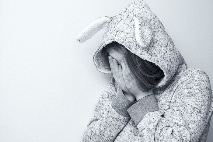 Niña tapándose el rostro