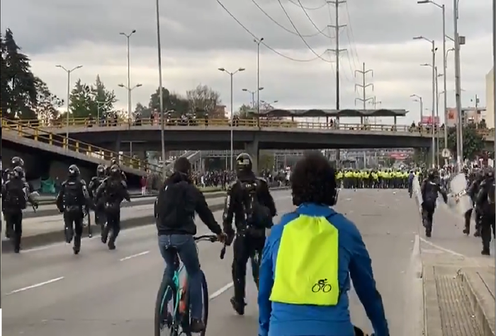 Posteriormente, llegó la fuerza disponible de la Policía, que, como lo explicó López, llegó en función defensiva. Pero los esfuerzos no sirvieron, e incluso hubo quemas de llantas sobre la vía. Finalmente, como la NQS seguía bloqueada y el servicio de Transmilenio estaba suspendido, llegó el Esmad.