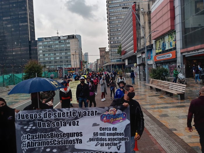 Varios propietarios y trabajadores de casinos en la ciudad de Bogotá realizaron una jornada de protesta, para pedirle al Distrito que permita la reapertura de ese sector que ha sido duramente golpeado a nivel económico por cuenta de la pandemia.