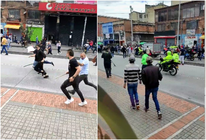 En las últimas horas en el centro de Bogotá, comerciantes informales y formales, se enfrentaron en una verdadera batalla campal. Con palos y machetes protagonizaron, a lo largo de la calle 13 y la Avenida Jimenez con Avenida Caracas, estos disturbios. La razón, las protestas que se han registrado por parte de vendedores de esta zona, que piden a la Alcaldía se levante la medida de cuaretena estricta que los ha perjudicado.