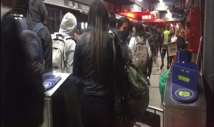 Ante la mirada incrédula de las personas que sí habían pagado el pasaje, los muchachos cantaban: "evadir, no pagar, otra forma de luchar", mientras se colaban.