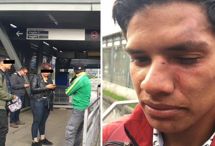 En la estación de Salitre-El Greco de Transmilenio (calle 26) un joven que se había colado recibió un fuerte golpe por parte de un bachiller de la Policía.