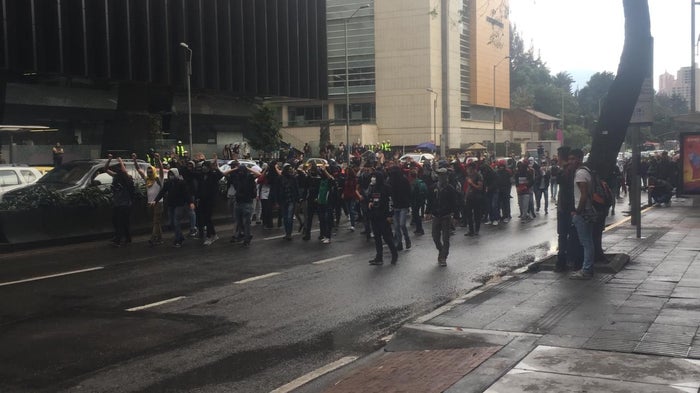 Durante la manifestación sostuvieron un enfrentamiento con personal de la Policía antimotines, que intentaba impedir que mantuvieran taponada la vía. Los jóvenes algunos de ellos encapuchados, les lanzaron piedras a los uniformados, quienes se hicieron sobre el separador de la calle 40 con carrera Séptima.
