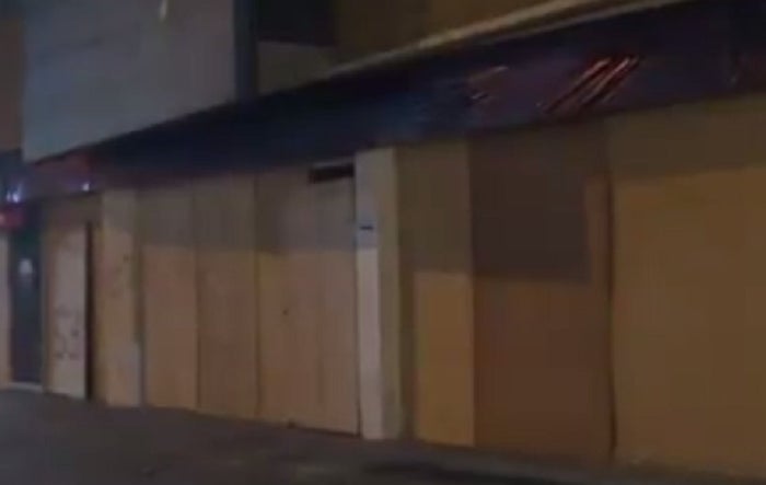 Hasta las sedes de varias entidades bancarias recurrieron a láminas de madera para blindar sus puertas, y ocultaron el nombre de los bancos con bolsas plásticas.