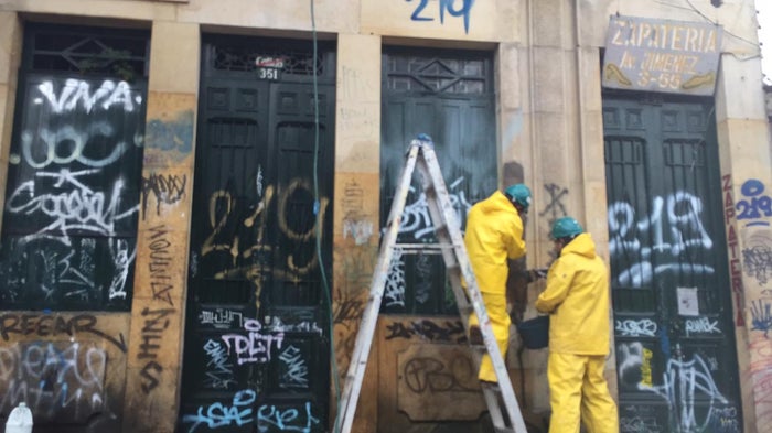 La 'Cuadrilla Color' inició en el centro de Bogotá sus actividades de cuidado de las fachadas que hacen parte del patrimonio arquitectónico de la ciudad, atendiendo el llamado de la ciudadanía, según confirmó la Alcaldía Mayor.