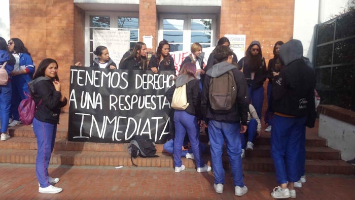 Estudiantes del Instituto Educativo Distrital Palermo, sede Teusaquillo, adelantaron un plantón este jueves en inmediaciones al plantel para rechazar una serie de irregularidades que, según ellos, se vienen presentándose en la institución.