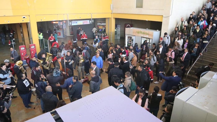 Miles de pasajeros que diariamente se movilizan en TransMilenio y que circulan por el portal de Suba, se sorprendieron hoy al ver a la Orquesta Filarmónica tocar en dicho lugar.