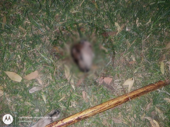 El pobre animal perdió la cabeza y fue empalado con un bastón y sus restos mortales quedaron al lado de un sendero peatonal de un lote baldío y una gran zona llena de arbustos cerca al lugar donde se desarrollan las obras de la ALO (Avenida Longitudinal de occidente), y con presencia de cambuches donde se refugian habitantes de calles y población migrante.