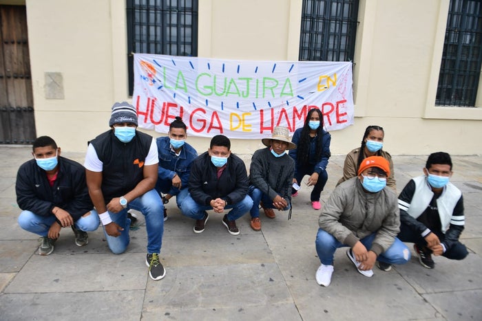 Tras 18 días de haber retomado una huelga de hambre, un grupo de jóvenes guajiros decidieron trasladarse desde el parque Simón Bolívar de Riohacha, hasta la Plaza de Bolívar en Bogotá.