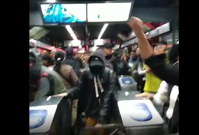En las grabaciones, se puede ver cómo algunos funcionarios del sistema tratan de impedir que las personas ingresen a la estación sin pagar. Sin embargo, los jóvenes insisten para que pasen, ya sea saltando el torniquete o por la entrada de las personas en sillas de ruedas.