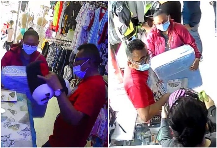 Un video de seguridad muestra el momento en que estas personas primero llegan a una tienda de ropa ubicada en Tintal con la excusa de comprar unas babuchas. Mientras la empleada atiende a otro cliente, el hombre disimuladamente se acercó hasta la caja y cogió rápidamente un teléfono celular que estaba en el mostrador. La pareja de pillos salió del lugar como si nada.