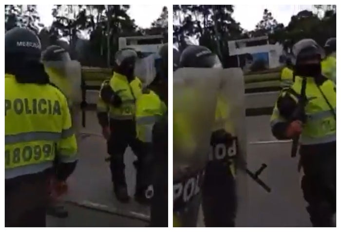 Las imágenes fueron captadas por un manifestante en las inmediaciones de la Universidad Nacional en Bogotá.