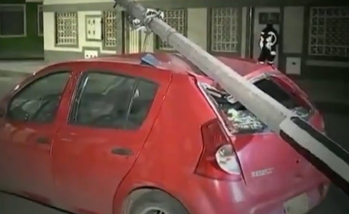 En horas de la noche de este jueves una familia pasó tremendo susto cuando un poste cayó sobre su vehículo que se encontraba parqueado en plena vía pública.