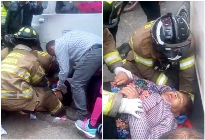 Unidades del cuerpo oficial de bomberos de la capital del país, llegaron al lugar para adelantar el rescate de la doña debajo de la nave de placas SKL 831, y luego trasladarla en una ambulancia a un centro hospitalario cercano con serias lesiones.