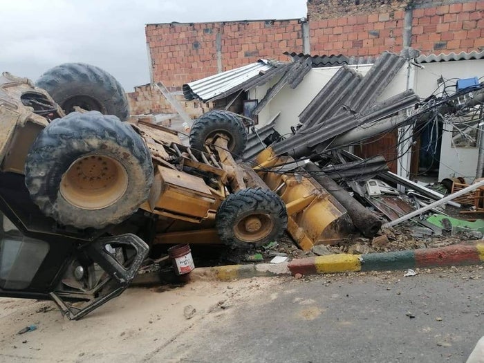 Tres personas resultaron gravemente heridas luego que una máquina retro excavadora perdiera el control del operario, rodara y chocara contra dos viviendas ubicadas en la localidad San Cristóbal, en el sur oriente de Bogotá.