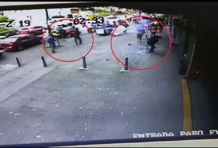 Dos encapuchados lanzaron los explosivos sin importarles que justo estaban pasando ciudadanos que nada tenían que ver.
