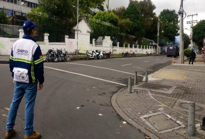 El Escuadrón Móvil Antidisturbios (Esmad) hace presencia en el sitio. En el lugar también hay gestores de convivencia de la Secretaría de Gobierno y agentes de la Policía de Tránsito.