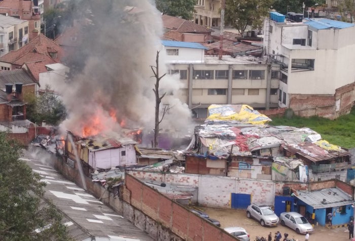 Al lugar de la conflagración llegaron oficiales del Cuerpo de Bomberos de Bogotá de las estaciones Central y Chapinero con el fin de intentar controlar las llamas.