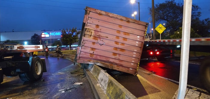 Al parecer dicho vehículo transportaba telas y el chofer resultó ileso. En el lugar se encuentra la policía de tránsito, quienes debieron solicitar una maquinaria especial para poder levantar el contenedor y así agilizar el movimiento de los carros que se encuentran estancados en esta importante vía de la capital del país.