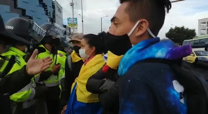Un espacio de diálogo espontáneo entre uniformados de la Policía y manifestantes se dio nuevamente en Bogotá, esta vez en medio de las protestas que adelantaban un grupo de jóvenes en la localidad de Suba, en el noroccidente de Bogotá.