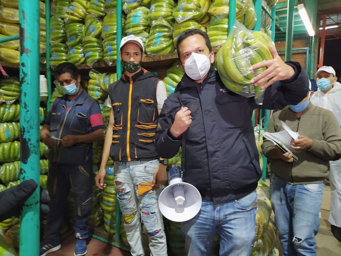 Con megáfono en mano, el mandatario explicó que el motivo de su visita se debía a que él personalmente quería pedirles a los vendedores donación de comida para las familias vulnerables del municipio.